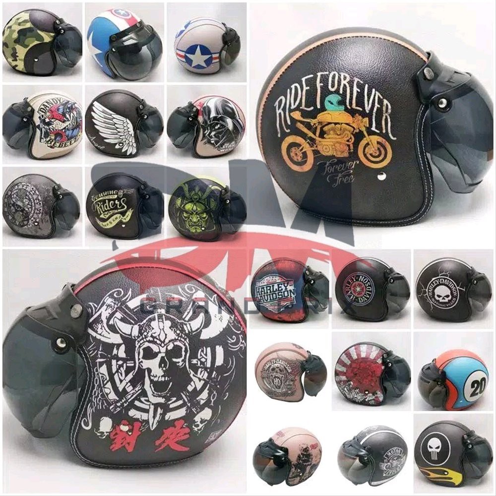 Laris Helm Wanita Pria Retro Bogo Sni Kulit Helmet Motor Half Face Unik Keren Terbaru Limited Shopee Indonesia