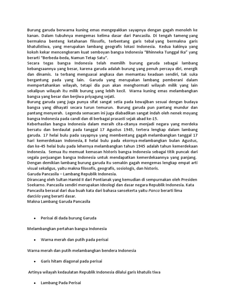 Pengertian makna burung garuda pancasila garuda pancasila adalah lambang negara indonesia yang memiliki semboyan bhineka tunggal ika yang berarti meskipun berbeda beda tetapi tetap satu jua. Kedua cakar burung garuda pancasila digambarkan mencengkeram sehelai pita berwarna putih. Banyak kerajaan yang memakai gambar burung garuda sebagai lambang kerajaannya.