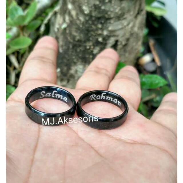 Cincin Couple Hitam Ukir Nama Pria Wanita Black Ring Cowok Cewek Shopee Indonesia