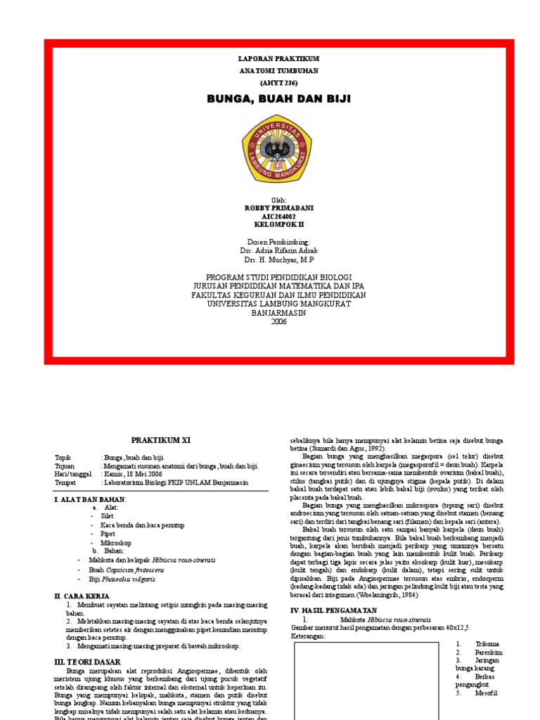 Laporan Praktikum Struktur Bunga Kembang Sepatu