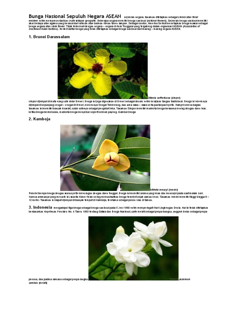 Bunga Nasional Sepuluh Negara Aseandi Sejumlah Negara