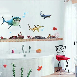 Abm Grosir Dekorasi Dinding Wallpaper Dinding Stiker Ikan Hiu Fish Shark Dunia Laut Kamar Mandi Shopee Indonesia